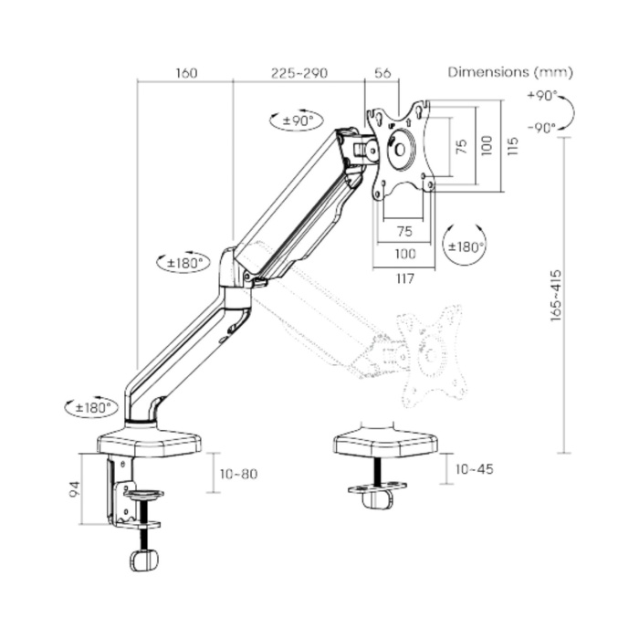 Držák monitoru Brateck LDT46-C012E je inovativní stolní držák s mechanickou pružinou, který byl navržen s ohledem na vaše potřeby a zlepšení pracovního prostoru. Tento všestranný stolní držák je ideální pro použití s různými typy monitorů, ať už pracujete z domova, v kanceláři nebo ve vzdělávacím prostředí. S držákem monitoru Brateck se vaše pracoviště stane efektivnějším a pohodlnějším. Díky odolné ocelové konstrukci poskytuje stabilní podporu pro jeden monitor s úhlopříčkou 17" až 32" a hmotností až 9 kg. Flexibilní konstrukce pro dostatečné nastavení výšky a pozorovacích úhlů s možností nastavení orientace monitoru na výšku nebo na šířku. Součástí balení jsou průchodky a svorky pro instalaci na téměř jakoukoliv pracovní plochu. Odnímatelná deska VESA pro uživatelsky přívětivou instalaci. Hlavní vlastnosti: Flexibilní nastavení polohy: Držák umožňuje snadné nastavení výšky, nastavitelný náklon monitoru v úhlu +/- 90°, vychýlení do stran o 180 ° a otočení monitoru o 360°, takže můžete snadno najít optimální pozici pro pohodlné a ergonomické používání. Odnímatelná deska VESA umožňuje snadnou instalaci monitoru. Vestavěný pružinový mechanismus umožňující dokonalé tuhosti ramene dle hmotnosti monitoru zajišťuje snadný pohyb nahoru a dolů. Univerzální kompatibilita: Tento stolní držák je kompatibilní s většinou monitorů o velikosti od 17" do 32" palců a s VESA standardy 75x75mm a 100x100mm. Nezáleží na tom, zda používáte LCD, LED nebo OLED monitor, držák monitoru Brateck poskytne bezpečné a stabilní uchycení. Vestavěný systém průchodek pro usnadnění organizace kabelů. Odolná konstrukce: Držák je vyroben z vysoce kvalitního materiálu, který zajišťuje stabilitu a odolnost. Snadná instalace: Držák je dodáván s kompletním montážním příslušenstvím, díky němuž je možné ho snadno namontovat na stůl během několika minut. Snadná montáž pomocí svorky na desky o tloušťce 10-80 mm nebo pomocí průchodky na desky o tloušťce 10-45 mm. Přednosti: Zlepšuje ergonomii a pohodlí při práci s monitorem Ušetří místo na vašem stole a pomůže udržovat věci organizované Kompatibilní s širokou škálou monitorů a velikostí Robustní a stabilní konstrukce pro dlouhodobé používání Užijte si optimální pracovní prostředí a zvyšte svoji produktivitu používáním držáků monitorů Brateck. Díky nastavitelnosti a univerzální kompatibilitě vám tento produkt nabídne skvělý zážitek při práci na vašem počítači.Informace o bezpečnosti produktu: Odpovědná osoba pro EU dle Nařízení o obecné bezpečnosti výrobků (2023).