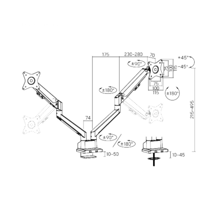 Držák monitoru Brateck LDT46-C024E dvě ramena vedle sebe mechanická pružina