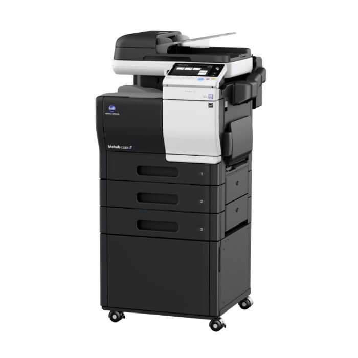 Konica Minolta Bizhub C3351 s přídavnými podavači papíru a podstavným stolkem DK-P03